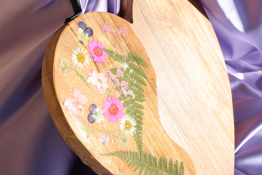 Heart Shaped Pink Flower Charcuterie Board | Floral Resin Board | Serving Tray | Cheese Board | Wild Flower