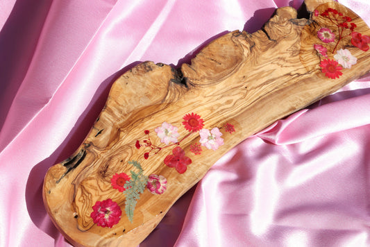 Pink Red Flower Charcuterie Board | Floral Resin Board | Serving Tray | Cheese Board | Wild Flower